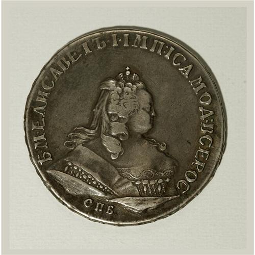 <B>Elizabeth. Rouble 1745 C??,</B></I> Crowned bust right/Imperial eagle, Bit-259, Uzd-795, VF details with a reverse flan flaw at 8 o'clock, and dark incrustation on both sides with light scratches.<BR><BR><b>Shipping:</b> Coins & Currency (<a target="_blank" href="http://www.heritageauctions.com/common/shipping.php">view shipping information</a>)