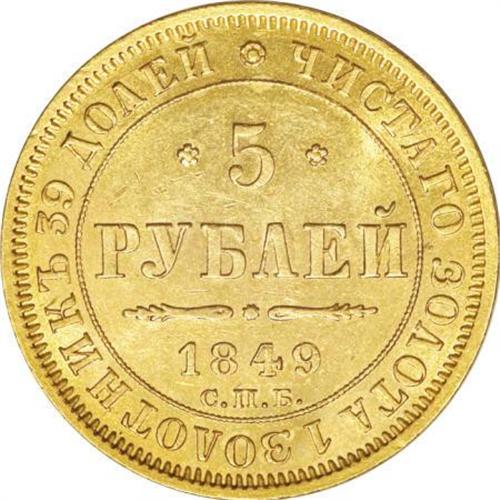 Russia Nicholas I. Gold 5 Roubles 1849 C??-A?,