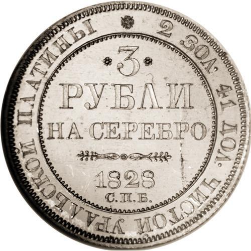 Russia: Nicholas I. Platinum 3 Roubles 1828 C??,