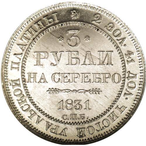 Russia: Nicholas I. Platinum 3 Roubles 1831 C??,
