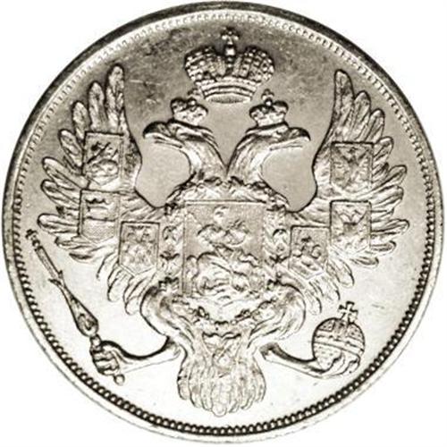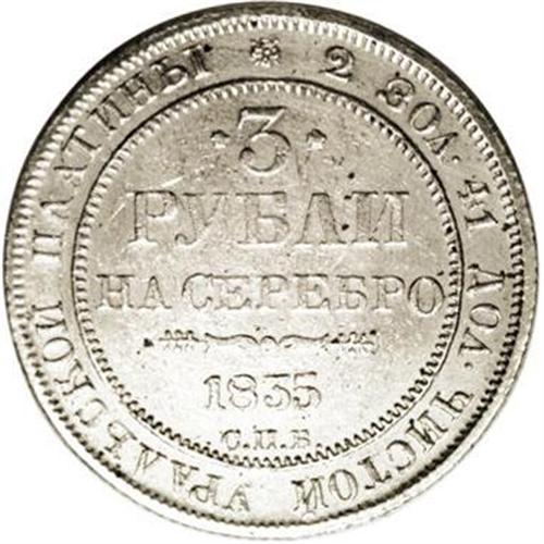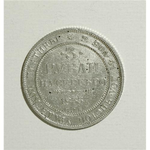 <B>Nicholas I. Platinum 3 Roubles 1835 C??,</B></I> Crowned Imperial eagle/Date and value in circle, Bit-81, F-160, AU with moderate reverse abrasions.<BR><BR><b>Shipping:</b> Coins & Currency (<a target="_blank" href="http://www.heritageauctions.com/common/shipping.php">view shipping information</a>)