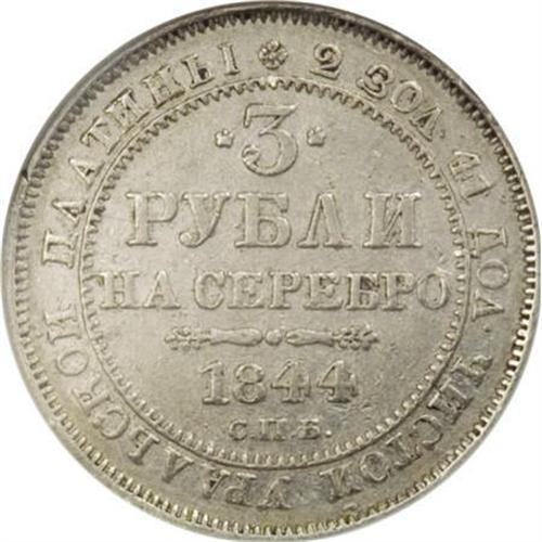 Russia Nicholas I. Platinum 3 Roubles 1844 C??,