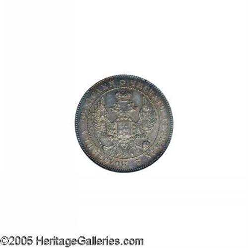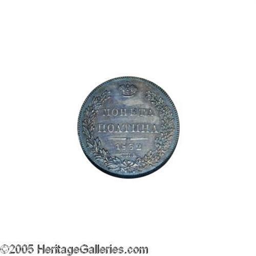 <B>Nicholas I Poltina (1/2 Rouble) 1832, </B></I>KM-C167.1, MS62 Prooflike NGC, deep pewter to gold patina, very attractive.