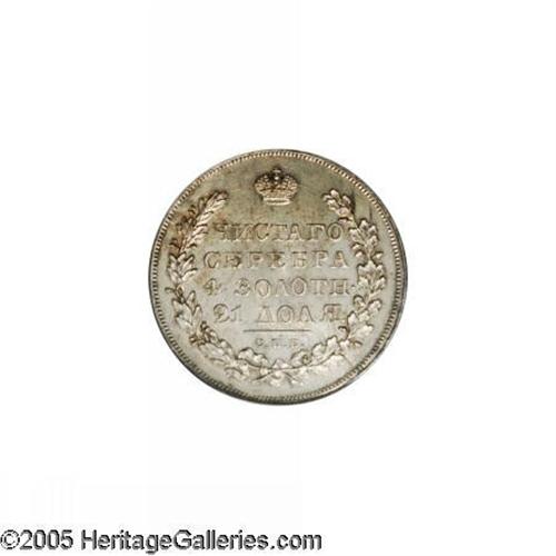 <B>Nicholas I Rouble 1830, </B></I>KM-C161, MS65 NGC, an extremely appealing example with sharp details and beautiful gray and gold toning over full mint brilliance.