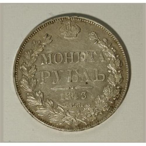 <B>Nicholas I. Rouble 1843 C??-A?,</B></I> Imperial eagle/Date and value in wreath, Bit-202, lustrous XF with a touch of golden toning.<BR><BR><b>Shipping:</b> Coins & Currency (<a target="_blank" href="http://www.heritageauctions.com/common/shipping.php">view shipping information</a>)