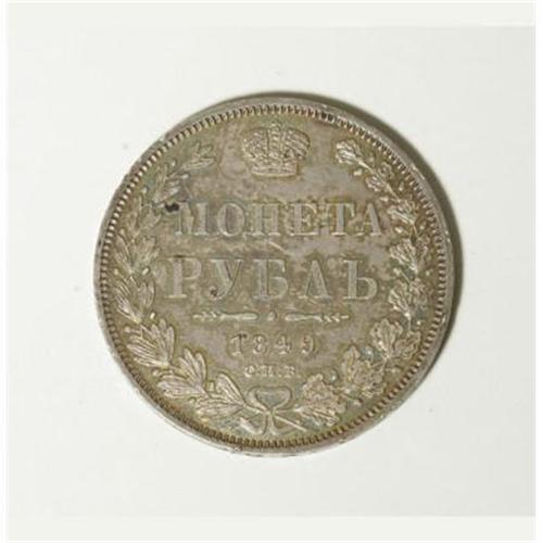 <B>Nicholas I. Rouble 1849 C??-?A,</B></I> Imperial eagle/Date and value in wreath, Bit-224, lustrous XF with rim bumps on both sides. <BR><BR><b>Shipping:</b> Coins & Currency (<a target="_blank" href="http://www.heritageauctions.com/common/shipping.php">view shipping information</a>)