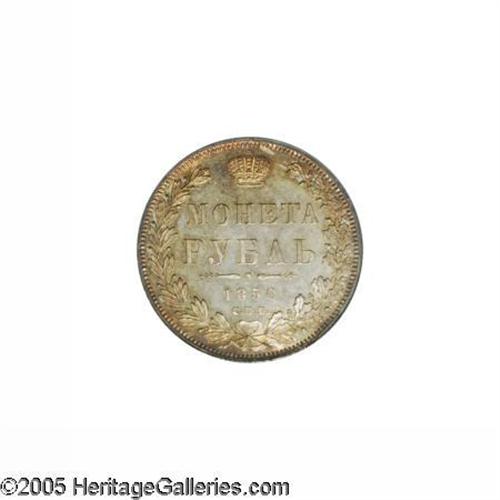 <B>Nicholas I Rouble 1850, </B></I>KM-C168.1, MS65 PCGS, a superb example with prooflike fields and old-time golden toning - a premium coin!