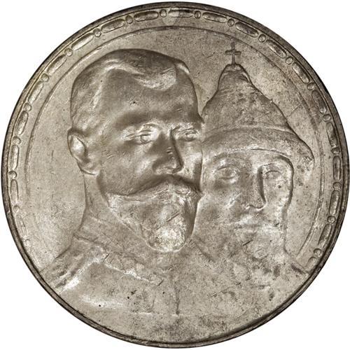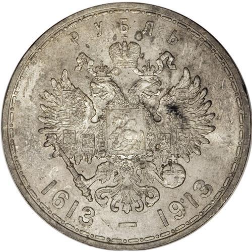 <B>Nicholas II. 300th Anniversary of Romanov Dynasty Commemorative Rouble 1913 BC, </B></I>KM-Y70, Uzd-4201, UNC. Moderate abrasions with full luster and light gray patina.<BR><BR><b>Shipping:</b> Coins & Currency (<a target="_blank" href="http://www.heritageauctions.com/common/shipping.php">view shipping information</a>)