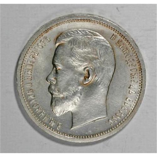 <B>Nicholas II. 50 Kopecks 1912 ??,</B></I> Bust left/Imperial eagle with date and value, Bit-91, Uzd-2188, UNC. Brilliant luster with a touch of golden toning.<BR><BR><b>Shipping:</b> Coins & Currency (<a target="_blank" href="http://www.heritageauctions.com/common/shipping.php">view shipping information</a>)