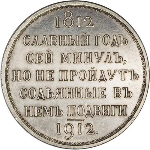 <B>Nicholas II. Centennial of the Napoleonic War Commemorative Rouble 1912,</B></I> Bit-334, Uzd-4200, AU. Very lightly cleaned with minor hairlines and considerable remaining luster.<BR><BR><b>Shipping:</b> Coins & Currency (<a target="_blank" href="http://www.heritageauctions.com/common/shipping.php">view shipping information</a>)