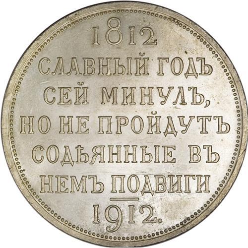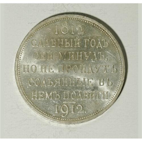 <B>Nicholas II. Centennial of the Napoleonic War Commemorative Rouble 1912,</B></I> Bit-334, Uzd-4200, UNC. Light to moderate abrasions with full mint frost and a nice strike.<BR><BR><b>Shipping:</b> Coins & Currency (<a target="_blank" href="http://www.heritageauctions.com/common/shipping.php">view shipping information</a>)