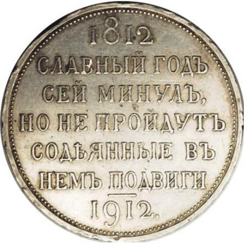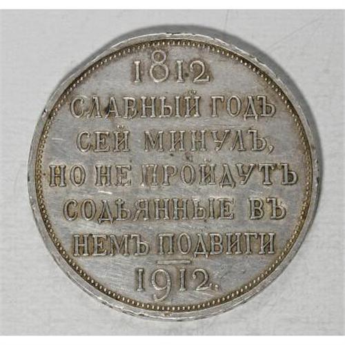 <B>Nicholas II. Centennial of the Napoleonic War Commemorative Rouble 1912 ??,</B></I> Bit-334, XF with rim bumps. Well struck with abundant remaining luster.<BR><BR><b>Shipping:</b> Coins & Currency (<a target="_blank" href="http://www.heritageauctions.com/common/shipping.php">view shipping information</a>)