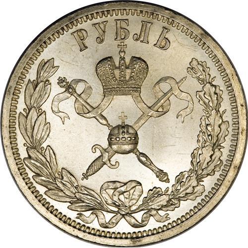 <B>Nicholas II. Coronation Rouble 1896 A?,</B></I> Bust left/Value over Crowned sword, scepter, and orb, Bit-322, Uzd-4197, Choice AU-UNC. Fully lustrous with minor hairlines on the obverse and a pristine reverse.<BR><BR><b>Shipping:</b> Coins & Currency (<a target="_blank" href="http://www.heritageauctions.com/common/shipping.php">view shipping information</a>)