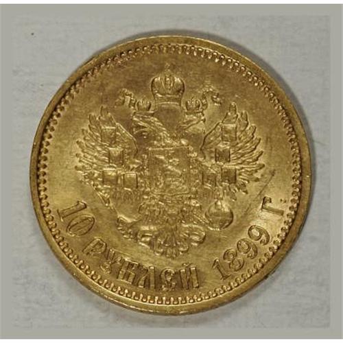 <B>Nicholas II. Gold 10 Roubles 1899 ??,</B></I> Bit-6, KM64, XF with luster remaining. <BR><BR><b>Shipping:</b> Coins & Currency (<a target="_blank" href="http://www.heritageauctions.com/common/shipping.php">view shipping information</a>)