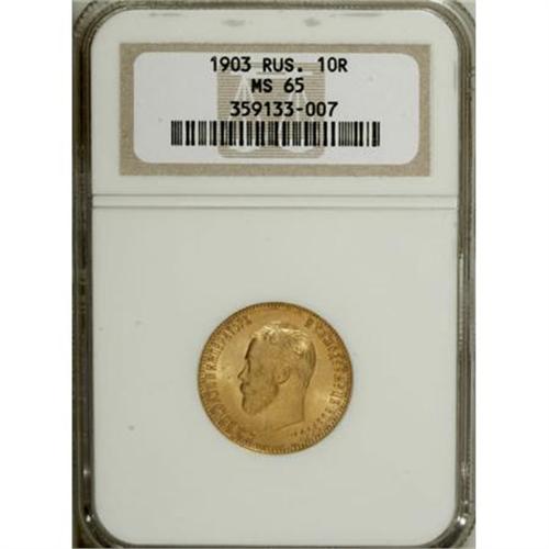 <B>Nicholas II. Gold 10 Roubles 1903 AP,</B></I> Bit-11, KM64, MS65 NGC. <BR><BR><b>Shipping:</b> Coins & Currency (<a target="_blank" href="http://www.heritageauctions.com/common/shipping.php">view shipping information</a>)
