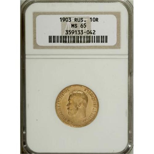 <B>Nicholas II. Gold 10 Roubles 1903 AP,</B></I> Bit-11, KM64, MS65 NGC.<BR><BR><b>Shipping:</b> Coins & Currency (<a target="_blank" href="http://www.heritageauctions.com/common/shipping.php">view shipping information</a>)