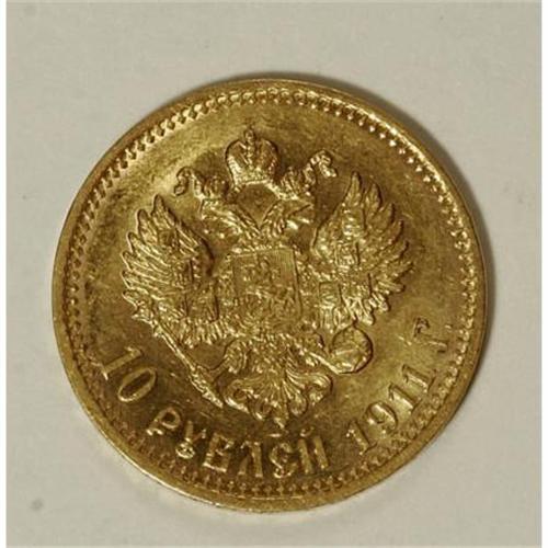 <B>Nicholas II. Gold 10 Roubles 1911 ??,</B></I> Bit-16, KM64, lustrous XF. <BR><BR><b>Shipping:</b> Coins & Currency (<a target="_blank" href="http://www.heritageauctions.com/common/shipping.php">view shipping information</a>)
