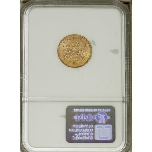 <B>Nicholas II. Gold 5 Roubles 1902 AP,</B></I> Bust left/Imperial eagle with date and value, Bit-29, F-180, MS66 NGC.<BR><I>From the Belle Glade Collection, Part Two.</B></I><BR><BR><b>Shipping:</b> Coins & Currency (<a target="_blank" href="http://www.heritageauctions.com/common/shipping.php">view shipping information</a>)
