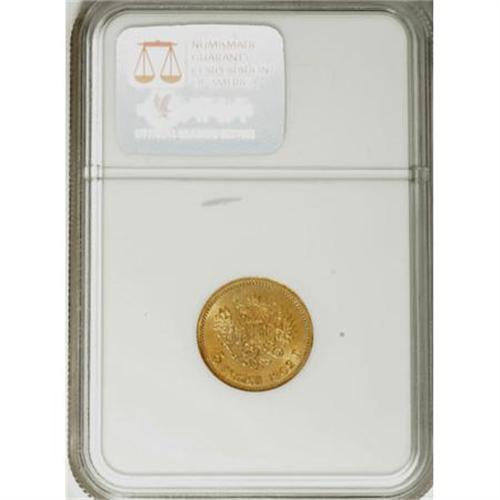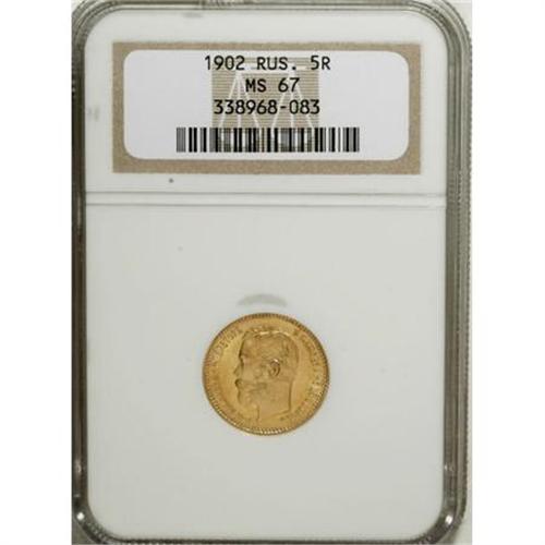 <B>Nicholas II. Gold 5 Roubles 1902 AP,</B></I> Bit-29, KM62, MS67 NGC. <BR><BR><b>Shipping:</b> Coins & Currency (<a target="_blank" href="http://www.heritageauctions.com/common/shipping.php">view shipping information</a>)
