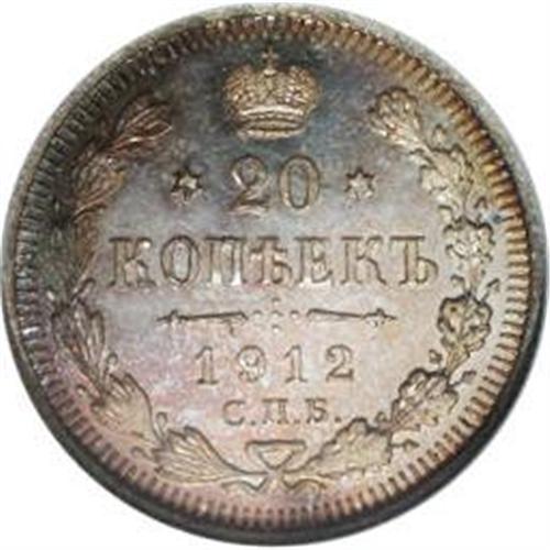 <B>Nicholas II. Proof 20 Kopecks 1912 C??-??,</B></I> Crowned Imperial eagle/Crowned date and value in wreath, Bit-112, Uzd-2189, Proof 67 NGC. An impeccable strike with pristine, flawless surfaces and attractive gold, charcoal, and blue toning. Ex: Hesselgesser Collection.<BR><I>From the Belle Glade Collection, Part Two.</B></I><BR><BR><b>Shipping:</b> Coins & Currency (<a target="_blank" href="http://www.heritageauctions.com/common/shipping.php">view shipping information</a>)