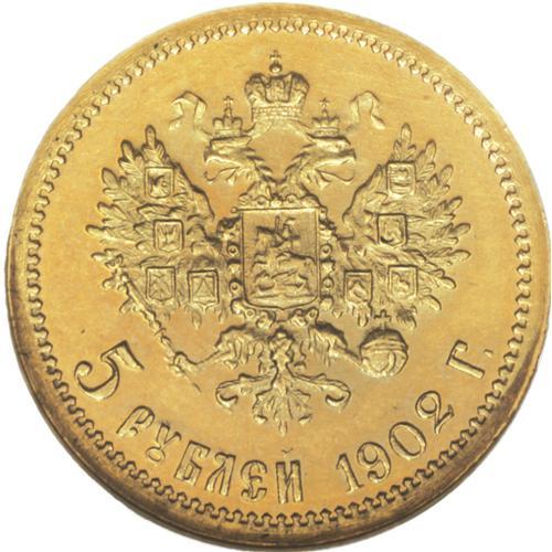 <B>Nicholas II. Proof Gold 5 Roubles 1902 AP,</B></I> Bust left/Imperial eagle with date and value, Bit-29, F-180, Proof 64 NGC. Green-gold color with nicely mirrored fields.<BR><I>From the Belle Glade Collection, Part Two.</B></I><BR><BR><b>Shipping:</b> Coins & Currency (<a target="_blank" href="http://www.heritageauctions.com/common/shipping.php">view shipping information</a>)