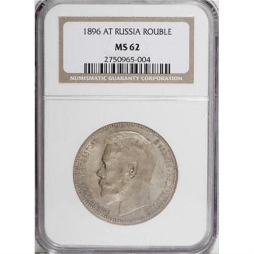 <B>Nicholas II. Rouble 1896 A?, </B></I> Bust left/Imperial eagle with date and value, Bit-39, MS62 NGC. <BR><BR><b>Shipping:</b> Coins & Currency (<a target="_blank" href="http://www.heritageauctions.com/common/shipping.php">view shipping information</a>)