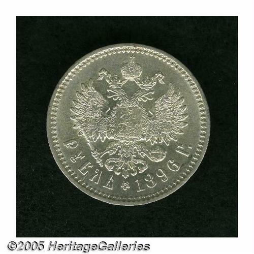 <B>Nicholas II Rouble 1896, </B></I>KM-Y59.3, nice AU-UNC, fully lustrous, few light obverse surface marks.
