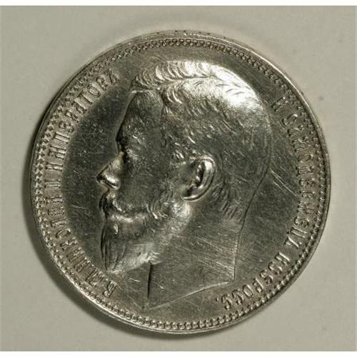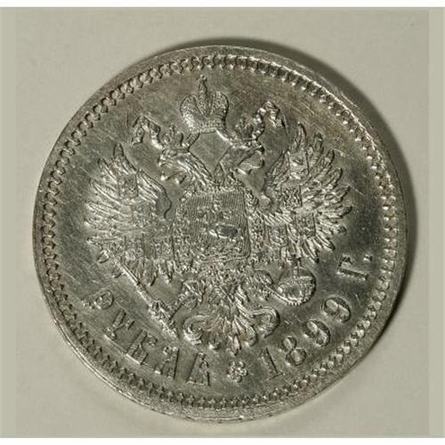 <B>Nicholas II. Rouble 1899 ??, </B></I> Bust left/Imperial eagle with date and value, Bit-47, XF-AU details, cleaned. <BR><BR><b>Shipping:</b> Coins & Currency (<a target="_blank" href="http://www.heritageauctions.com/common/shipping.php">view shipping information</a>)