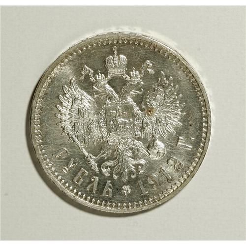<B>Nicholas II. Rouble 1912 ??,</B></I> Bust left/Crowned Imperial eagle with date and value, Bit-66, Uzd-2187, Choice UNC. Glistening luster with only minor imperfections and a superb overall appearance.<BR><BR><b>Shipping:</b> Coins & Currency (<a target="_blank" href="http://www.heritageauctions.com/common/shipping.php">view shipping information</a>)