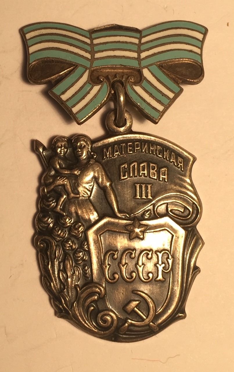 Awarded for bearing and raising 7 children