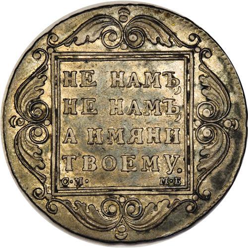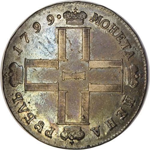<B>Paul I. Rouble 1799 CM-M?,</B></I> Crowned letter ? in cruciform, I in center/Ornamental cartouche with legend, Bit-35, Julian-931, VF-XF. Nicely toned with traces of luster on the reverse.<BR><BR><b>Shipping:</b> Coins & Currency (<a target="_blank" href="http://www.heritageauctions.com/common/shipping.php">view shipping information</a>)