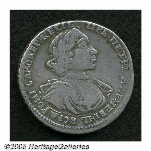 <B>Peter I Poltina (1/2 Rouble) 1719 Cyrillic, </B></I>KM156, toned F-VF, quite attractive for this grade.