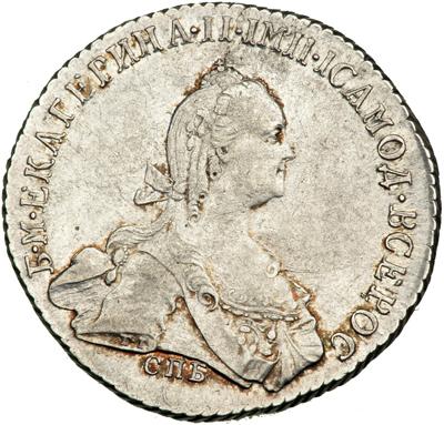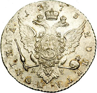 Russia. Poltina (½ Ruble), 1773-SPB YaCh. Bitkin-1st ed-274; KM-C66a. Catherine II, The Great, 1762-1796. Trace of light cleaning. Otherwise a well struck example with much luster. Extremely Fine.