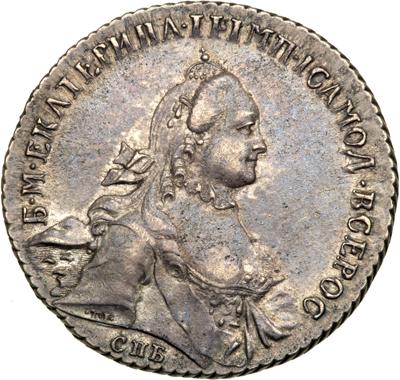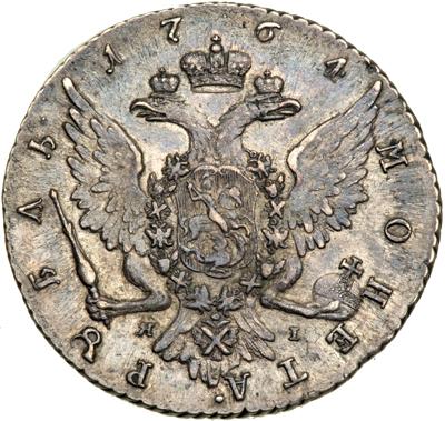 Russia. Ruble, 1764-SPB YaI. Bitkin-1st ed-177; Sev-1938; Dav-1683. Catherine II, The Great, 1762-1796. Trace of luster beneath old gray toning. NGC graded AU-53.