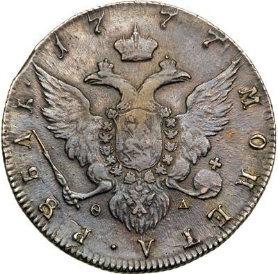 Russia. Ruble, 1777-SPB EL. Bitkin-1st ed-209; Sev-2123; Dav-1685. Catherine II, The Great, 1762-1796. Lightly cleaned and toned. Very Fine.