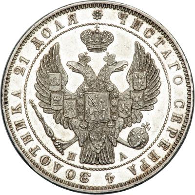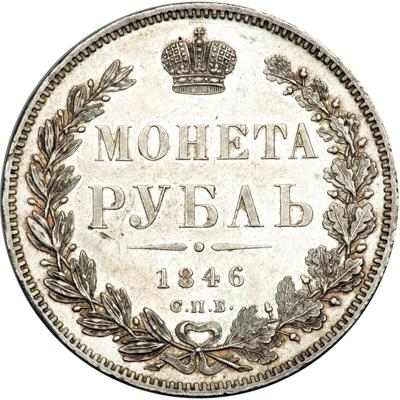 Russia. Ruble, 1846-SPB PA. Bitkin-1st ed-144; Sev-3505; Dav-283; KM-C168.1. Nicholas I, 1825-1855. Highly lustrous example. NGC graded MS-63.