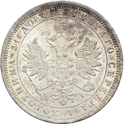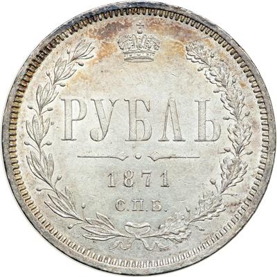 Russia. Ruble, 1871-SPB NI. Bitkin-84; Sev-3817; Dav-289. Alexander II, 1885-1881. Lustrous with light gray toning. Uncirculated.