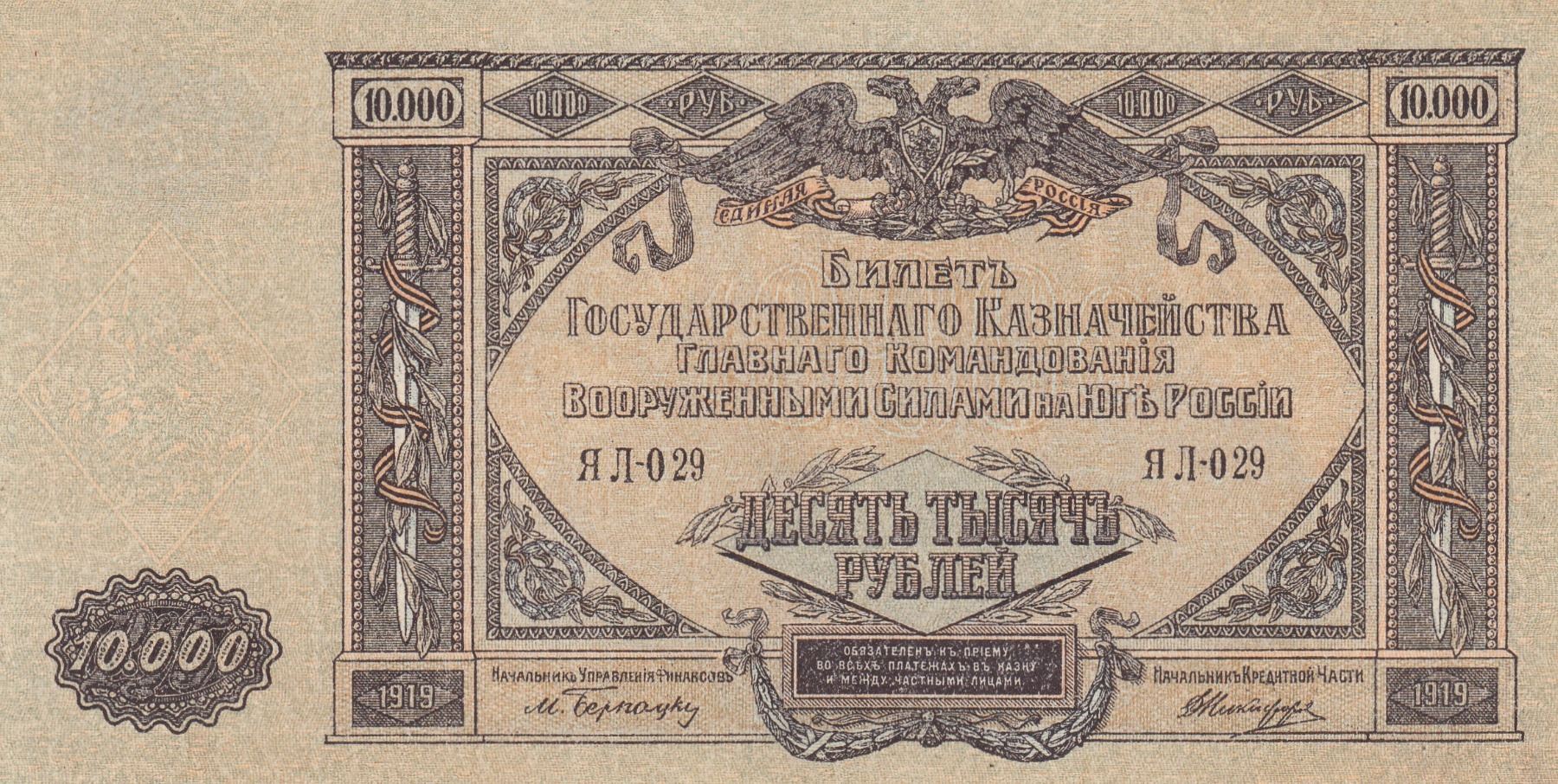 Russia, South Russia, 10.000 Ruble, 1919, AUNC, pS425 br/