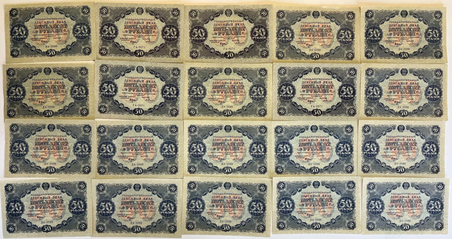 Russia; State Currency note 1922 50 Rubles, lot of 22 Unc notes.