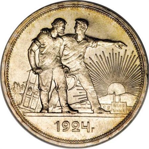 <B>U.S.S.R. Proof Rouble 1924 ??,</B></I> KM-Y90.1, Proof 66 PCGS. Boldly defined with light greenish-gold toning and a few barely noticeable contact marks. <BR><BR><b>Shipping:</b> Coins & Currency (<a target="_blank" href="http://www.heritageauctions.com/common/shipping.php">view shipping information</a>)