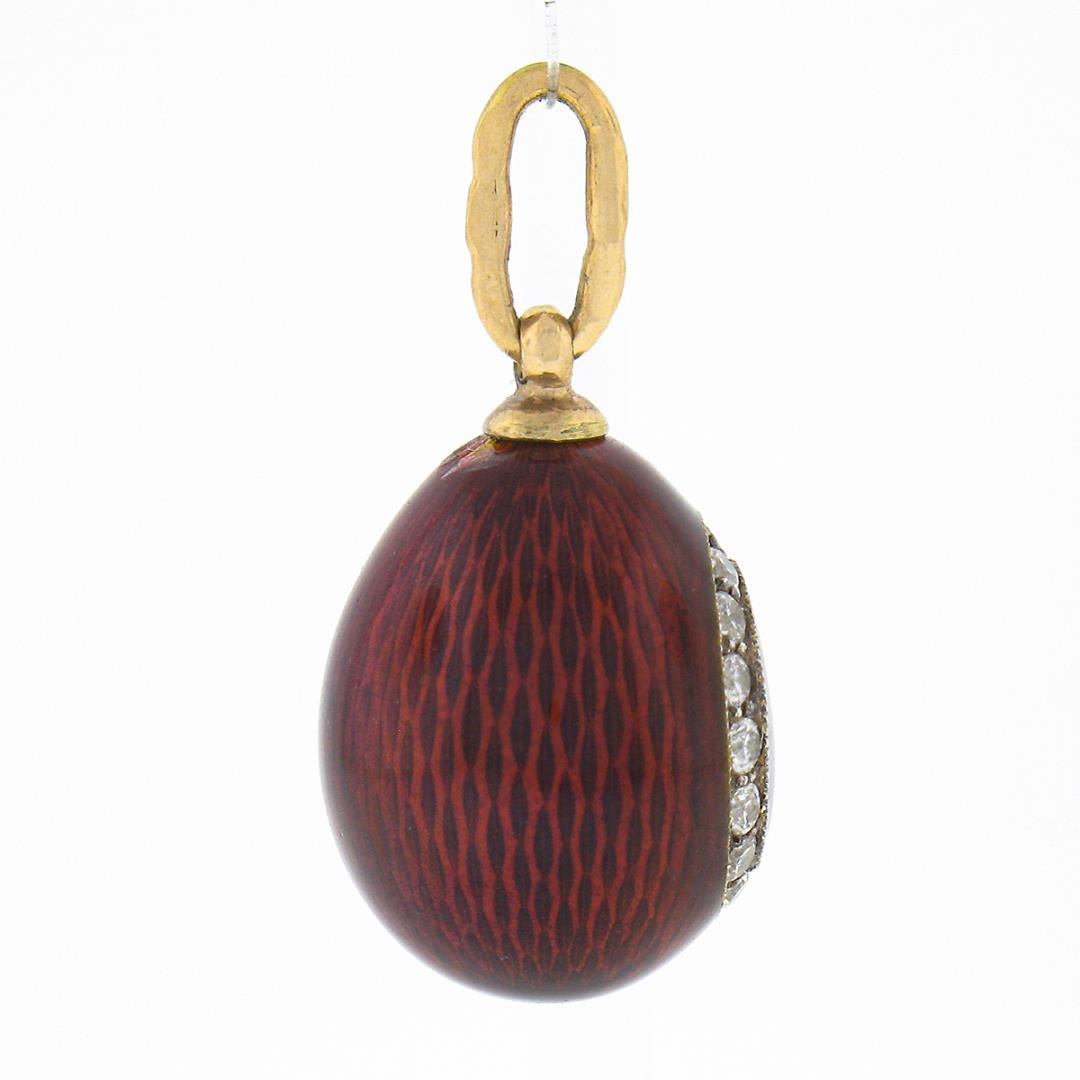 /a solid 14k yellow gold & silver russian egg charm pendant, with red enamel work & 16 clear round cut stones (1.60mm each). The pendant weighs a total of 5.53 grams, measures 25.80x13mm including the bail, and the inside of the bail measures 5.5x1.9mm.