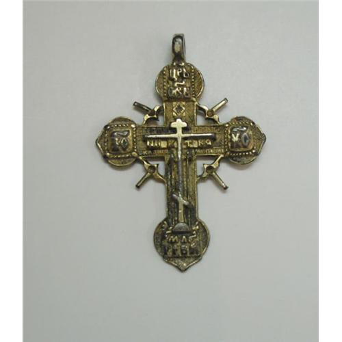 <tr><td><font size="2" face="Arial, Helvetica, sans-serif"><strong><font color="#000033">Title:</font></strong>Russian 18th c. silver gilded cross </font></td></tr>