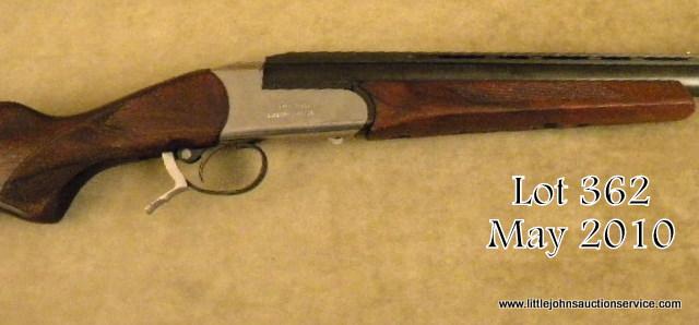 Russian Baikal Model SPR100 single shot shotgun (also marked “Spartan Gunworks by Remington” on left side of receiver), 12 gauge, 2-3/4” or 3” chamber, 29-1/2” ventilated and ported barrel, blue finish, checkered wood stocks, #05076428R.This gun is in overall excellent condition showing approx. 99% original finish to metal surfaces, excellent bore, crisp action, sharp markings, polished steel receiver, cocking indicator, excellent checkered wood stocks with “SpartanGunworks by Remington” marked hard rubber butt pad. Accompanied three screw in chokes and tool. Est.: $150-$300.