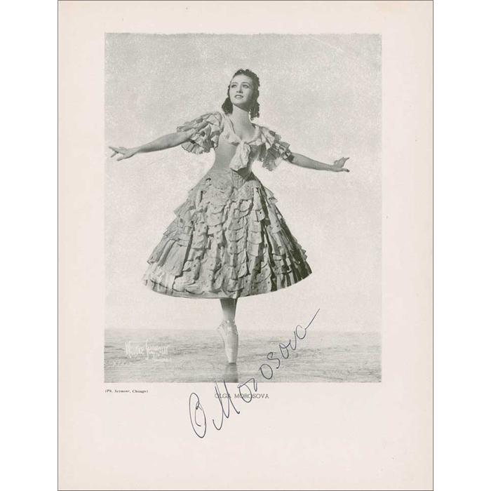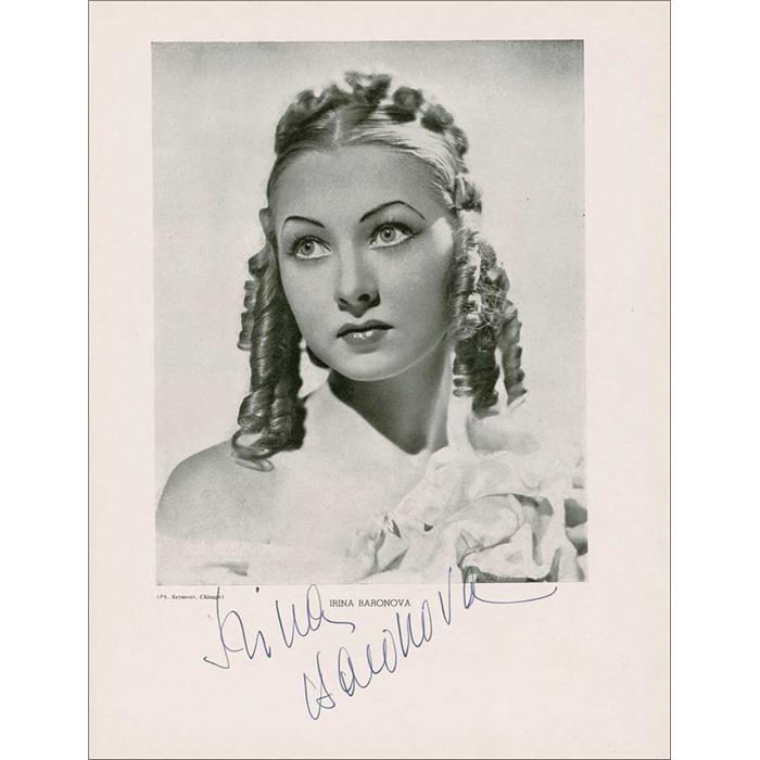Original vintage program from the Col. W. de Basil’s Ballets Russes 1937-1938 tour of the United States, 9.5 x 12.25, full of images and biographies of the troupe. Signed inside in ink by Irina Baronova, Roman Jasinski, Olga Morozova, Raya Kouznetsova, Sono Osato, Anna Leontieva, Galina Chabelska, Boris Belsky, Serge Bousloff, and conductor Antal Dorati. In fine condition, with creasing and edge wear to front and back covers, and light overall handling wear. Pre-certified PSA/DNA and RRAuction COA.