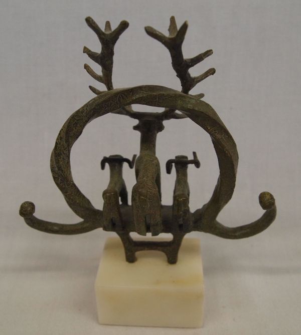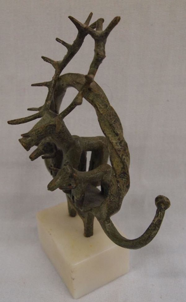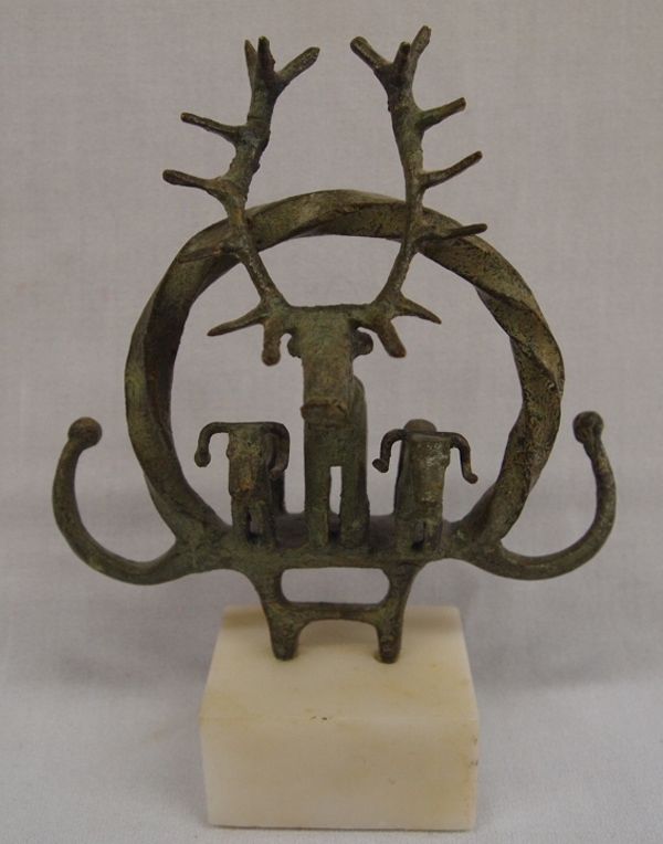 Russian Cast Iron Reindeer Sculpture - Marble Base, measures 7''H x 2.25''W x 1.5''Deep