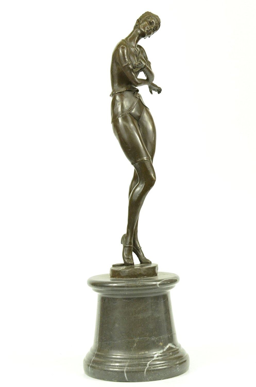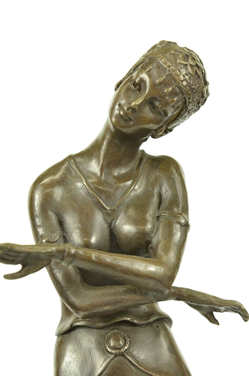 This Exquisite Beauty Russian Dances For A Pleased Crowed. She Looks Down To Her Left Side As She Is Trying Her Hardest To Concentrate On Hr Performance. She Has The Most Amazing And Stunning Dress That'S Suits Her Curves Perfectly, Yet Beautifully Has This Flow To It, Her Body Is In The Best Shape Anyone Can Wish For. Her Gorgeous Lushes Wavy Long Locks Go Down To Her Lower Back, While Its Nicely Comb Back To A Hold Still Style Up Top. As She Stand Above A PoisonEs Cobra She Looks Peaceful And Confident Even In The Presence Of Such A Killer Serpent. The Statue Is Cast Using The Ancient Lost Wax Method Stained In Brown Patina Finish With Preservation. 100% Handmade And 100% Bronze, Mounted Atop A Circular Black Marble Base. Bronze Dimensions with Marble Base: Height 20 X Width 6 inches. Weight: 15 LBS. Inventory: 57X20175975