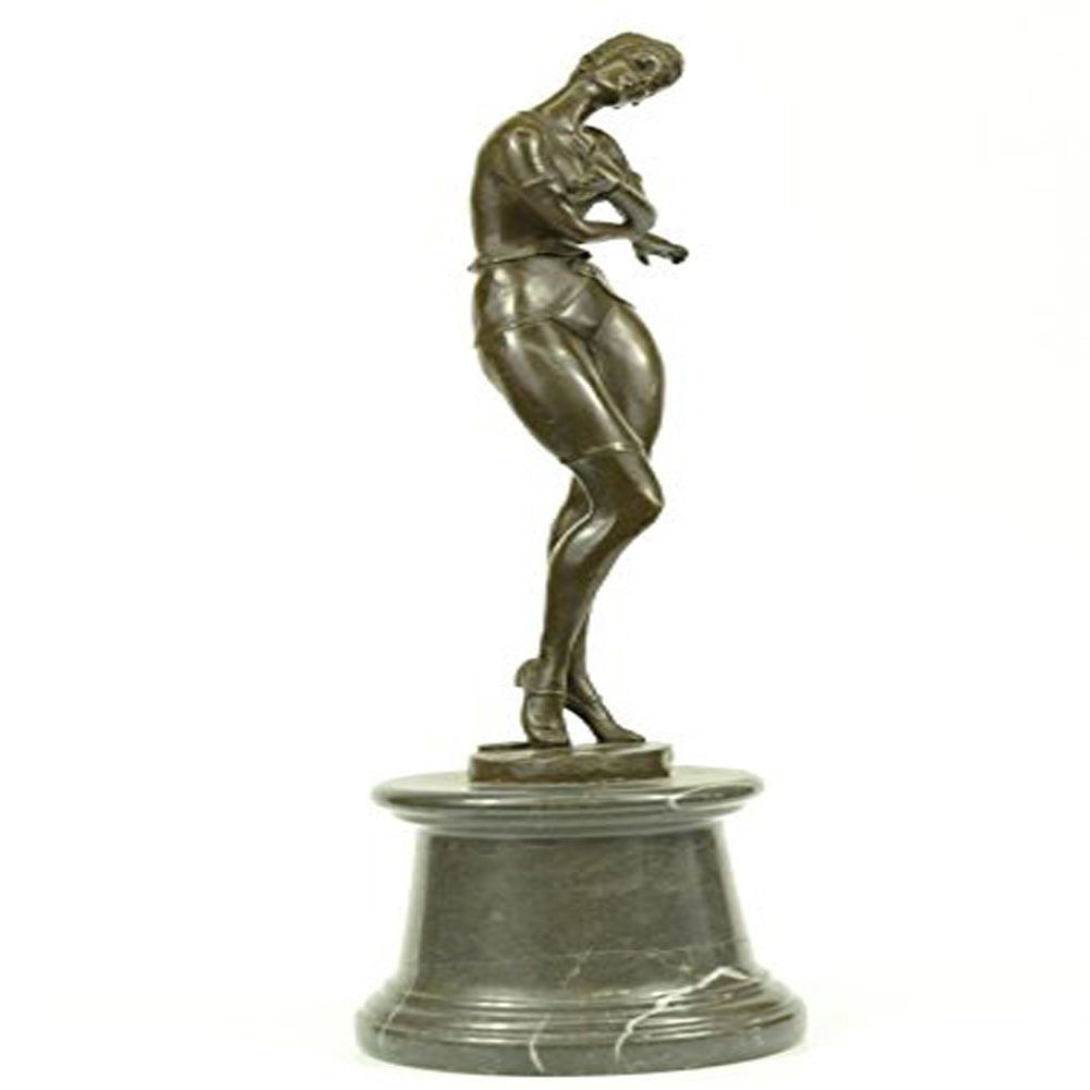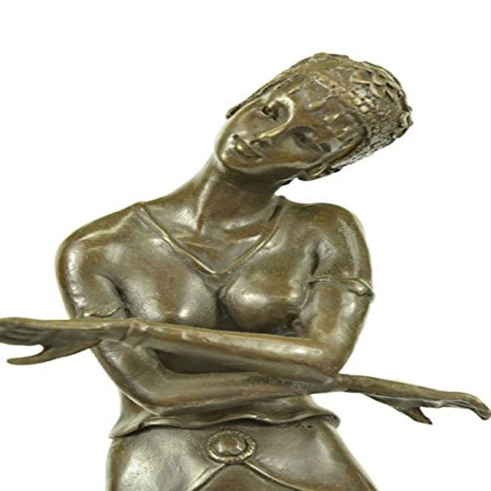 This Exquisite Beauty Russian Dances For A Pleased Crowed. She Looks Down To Her Left Side As She Is Trying Her Hardest To Concentrate On Hr Performance. She Has The Most Amazing And Stunning Dress ThatS Suits Her Curves Perfectly, Yet Beautifully Has This Flow To It, Her Body Is In The Best Shape Anyone Can Wish For. Her Gorgeous Lushes Wavy Long Locks Go Down To Her Lower Back, While It's Nicely Comb Back To A Hold Still Style Up Top. As She Stands Above A PoisonEs Cobra She Looks Peaceful And Confident Even In The Presence Of Such A Killer Serpent. The Statue Is Cast Using The Ancient Lost Wax Method Stained In Brown Patina Finish With Preservation and Mounted Atop A Marble Base. Bronze Dimensions with Marble Base: Height 20 X Width 6 inches. Weight: 15 LBS.