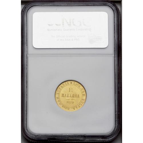 Russian Duchy gold 10 Markkaa 1879S, KM-8.2, MS66 NGC. Russian Duchy gold 10 Markkaa 1879S,