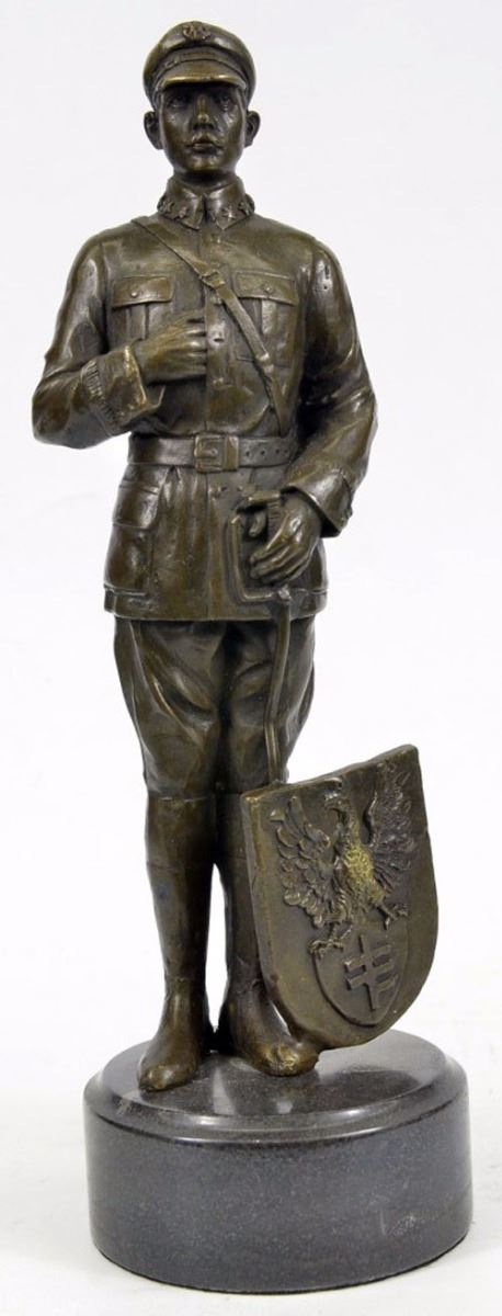 Russian Emperor Guard With Eagle Symbol Bronze Sculpture on Marble Base