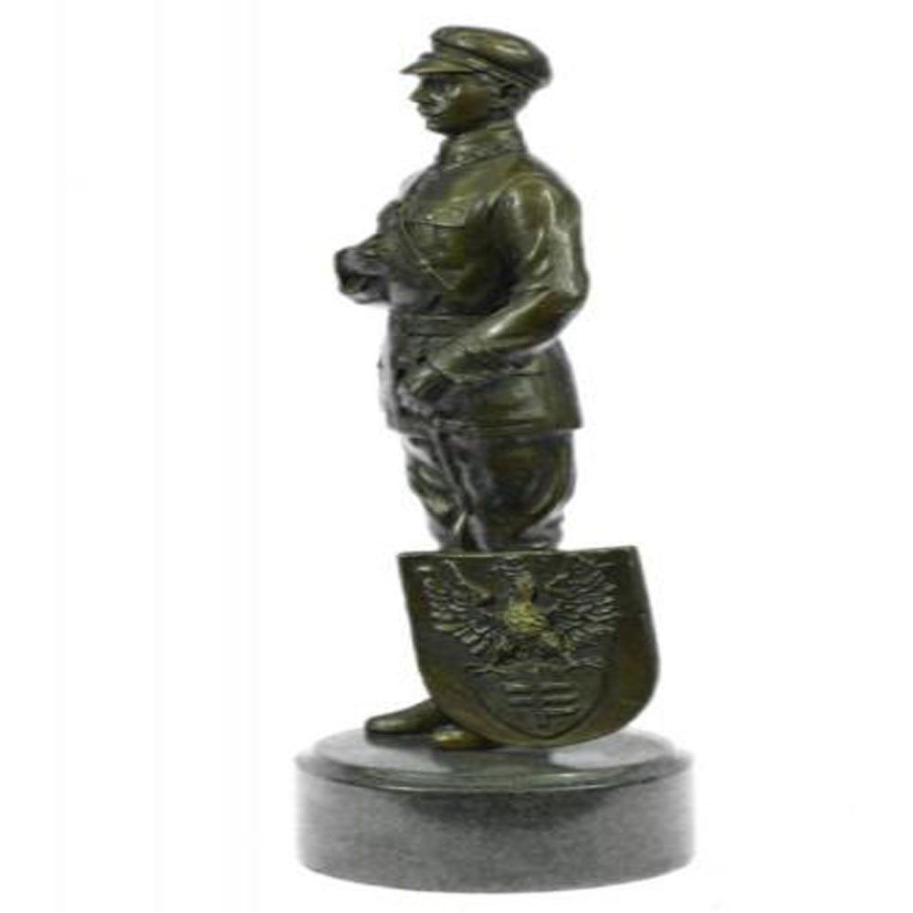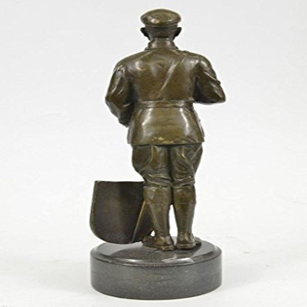 This Russian Emperor Guard stand at attention as he places his right hand above his heart and he sings to his countrys anthem. He has the typical guard attire, from the hat to the pants, jacket, and to the boots. He is very proud to be serving his country in such a way, even if its a little as a guard, he still stands tall, and proud. This Sculpture was cast using the ancient old Lost Wax Method stained in brown patina finish for preservationb and mounted atop a marble base. Bronze Dimensions with Marble Base: Height 12 X Width 4 inches. Weight: 7 LBS.